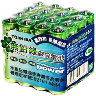 品牌:TOSHIBA 規格:碳鋅電池3號 1.5V 16入 特色: *適用於一般電器。 *品質佳、電流穩。 注意事項: *請勿吞食,並請存放於兒童不易取得之處。 *勿燃燒電池。 *請遵循一般碳鋅電池安全規範使用。