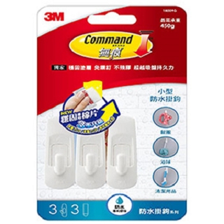品牌:3M 材質:泡棉、膠、高衝擊聚苯乙烯、異丙醇 規格:最高承受重量1.36kg 保存期限:3年 生產國別:台灣(無痕膠條產地-美國) 特色: *可掛頭巾、浴球、毛巾等。 *免鑽釘、不殘膠。 注意事項: *請依包裝上說明使用。 *請勿懸掛貴重、具紀念價值物品或危險物品。 *兒童請由家長陪同使用,避免兒童吞食。