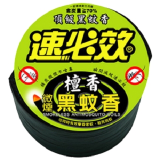 本劑採用碳粉取代木粉才能製造出煙少的高級微煙蚊香,能否微煙,關鍵在於碳粉量必須≧70%才會達到微煙效果。 材質/成分:環境用藥字樣 : 一般環境衛生用藥 許可證字號 : 環署衛輸字第 0623 號 品牌:速必效微煙黑蚊香 成分:賜百寧(Esbiothrin)--- 0.2 % w/w 規格:15公克/捲 數量:50卷 產地:中國 防治對象: 蚊 商品有效期限:3年 本品適用於13.2平方公尺(4坪)之一般室內空間及辦公室等。 使用方式: 1. 拇指和食指小心捏著各卷內部,輕搖兩下即可分開 2. 豎起插座叉,置蚊香內端於叉孔上,於外端點燃。 3. 蚊香斷片時,可固架於叉孔上使用。 商品特色: * 趕跑蚊子,輕巧方便外出攜帶 榮獲得MIT微笑標章及ISO9001國際品質認證 為國內第一家環境用藥、防治害蟲及病媒蚊的優良廠商A環署衛製字第700 注意事項: * 使用時暫關閉門窗,人、寵物離開,可提高防治效果。如果人、寵物停留在室內,使用時,打開門窗保持空氣流通。 * 使用時,應遠離易燃物品以防火災。 * 每一卷蚊香於13.2平方公尺(4坪)房間內,約可使用7小時。 * 取用蚊香後,應以肥皂水清洗雙手及污染部位。 * 請將本品置於孩童及寵物不易觸及之處。 * 本品請妥善保存於陰涼乾燥之處所,不要接近火源、易燃或日光直接暴曬之處。 * 本品應與食物、飲料及食器隔離貯存。