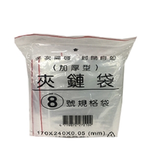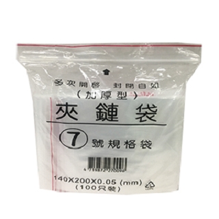 規格袋 (0#~12#) 規格:00# 4*6cm 0# 4*3.5cm 1# 5*7cm 2# 6*8.5cm 3# 7*10cm 4# 8.5*12cm 5# 10*14cm 6# 12*17cm 7# 12*20cm 8# 17*24cm 9# 20*28cm 10# 24*34cm 11# 28*40cm 12# 34*45cm 特色: *夾鏈袋可多次開啟,密封自如。 *多種尺寸可供選擇。