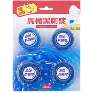 品牌:馬桶固體潔廁錠 TC9311A-5 材質:香精,界面活性劑,色料,抗菌劑 容量:50g/個 數量:5入 產地:中國 保存期限:4年 產品特色: * 洗淨:沖水時自動清潔馬桶,保持光亮如新 * 防污:防止細菌滋生,使水垢髒污不易附著 * 芳香:散發清新香氣,有效消除馬桶異味 * 便利:水溶性薄膜,可自動分解,方便不沾手 * 長效:持久清潔,用量超省,經濟實惠 使用方法: * 把水箱入的水沖掉,將本品從水箱近浮球方放入(需遠離出水口),五分鐘後產品於水箱底部靜置,即可使用隨地只要輕輕一噴,就可以立即消除衣物上的異味,讓衣物就像剛洗過一樣地乾淨清爽喔! 或者您也可以將穿過卻還不必清洗的衣物