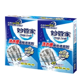 品牌:妙管家洗衣槽清洗劑 | 150 g 成份:活氧去垢鹽Ag+銀離子、催化劑 容量:150g*4包 數量:1瓶 產地:亞洲 適用:一般及滾筒式洗衣機、塑膠槽、不鏽鋼槽 商品特色: * 快速省時:清潔免浸泡,全程只需45分鐘 * 除菌消臭:添加Ag+銀離子配方,有效去除99.9%細菌 * 速效除霉:有效去除洗衣槽內部黴菌 注意事項: * 請詳讀並依照外包裝使用說明及注意事項 * 品標示尺寸/顏色,因進貨批次不同,可能有些許誤差(皆在合理範圍),請客人您知悉 * 塑料商品運送過程難免有些微刮傷,不列入瑕疵品,完美主義者請注意