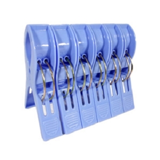 Udlife 暖暖竹竿夾 型號:JW9366-6 材質:PP(聚丙烯)、鋼線 規格:12 X 2.5cm 顏色:合色 產地:台灣 特色: * 強化材質耐用不易脆化 * 雙彈簧衣物不易脫落 * 大夾口適用厚棉被、毛毯…等厚重衣物