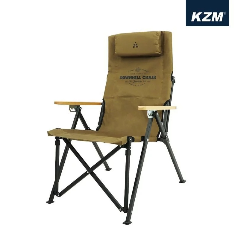 • KZM 素面木把手折疊椅 四段可調 卡其色